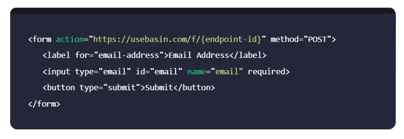 Then, once you’ve setup the no-code backend, you simply point your website forms to their endpoint. Here’s a basic example: