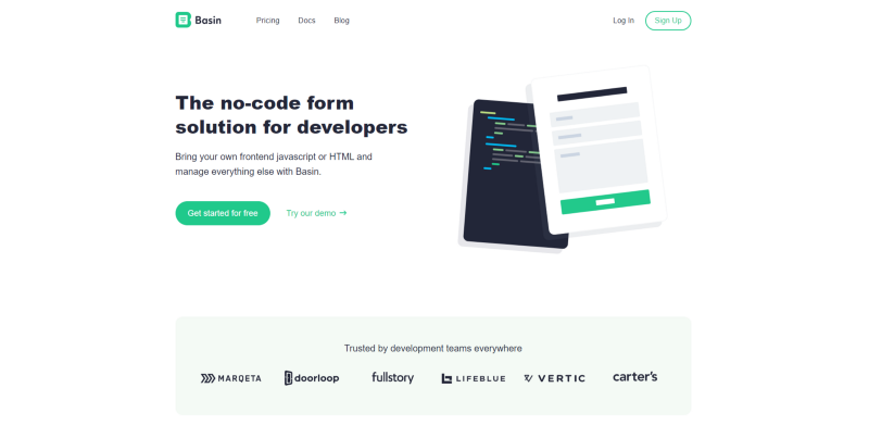 Basin is mostly no-code, which means it only takes you a few minutes to setup a fully functional backend to handle your website forms.